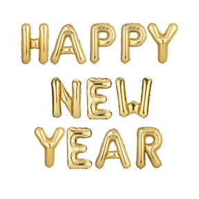 Metallisierter Happy New Year Folienballon in Gold.